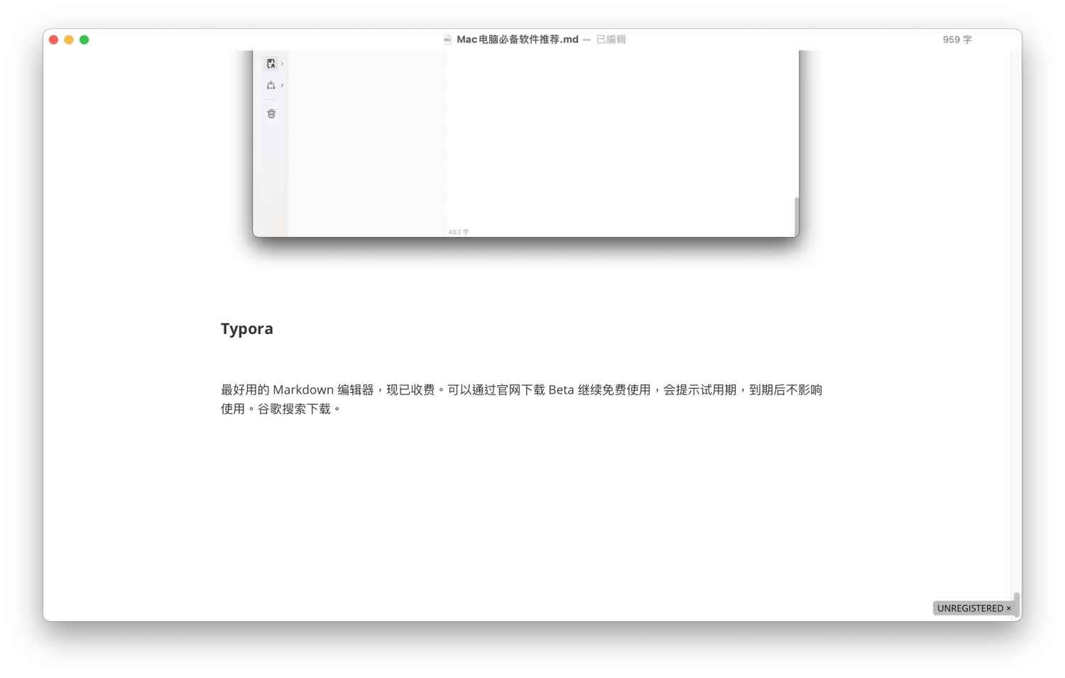 最好用的 Markdown 编辑器,现已收费。可以通过官网下载 Beta 版继续免费使用,会提示试用期,到期后不影响使用。谷歌搜索下载。