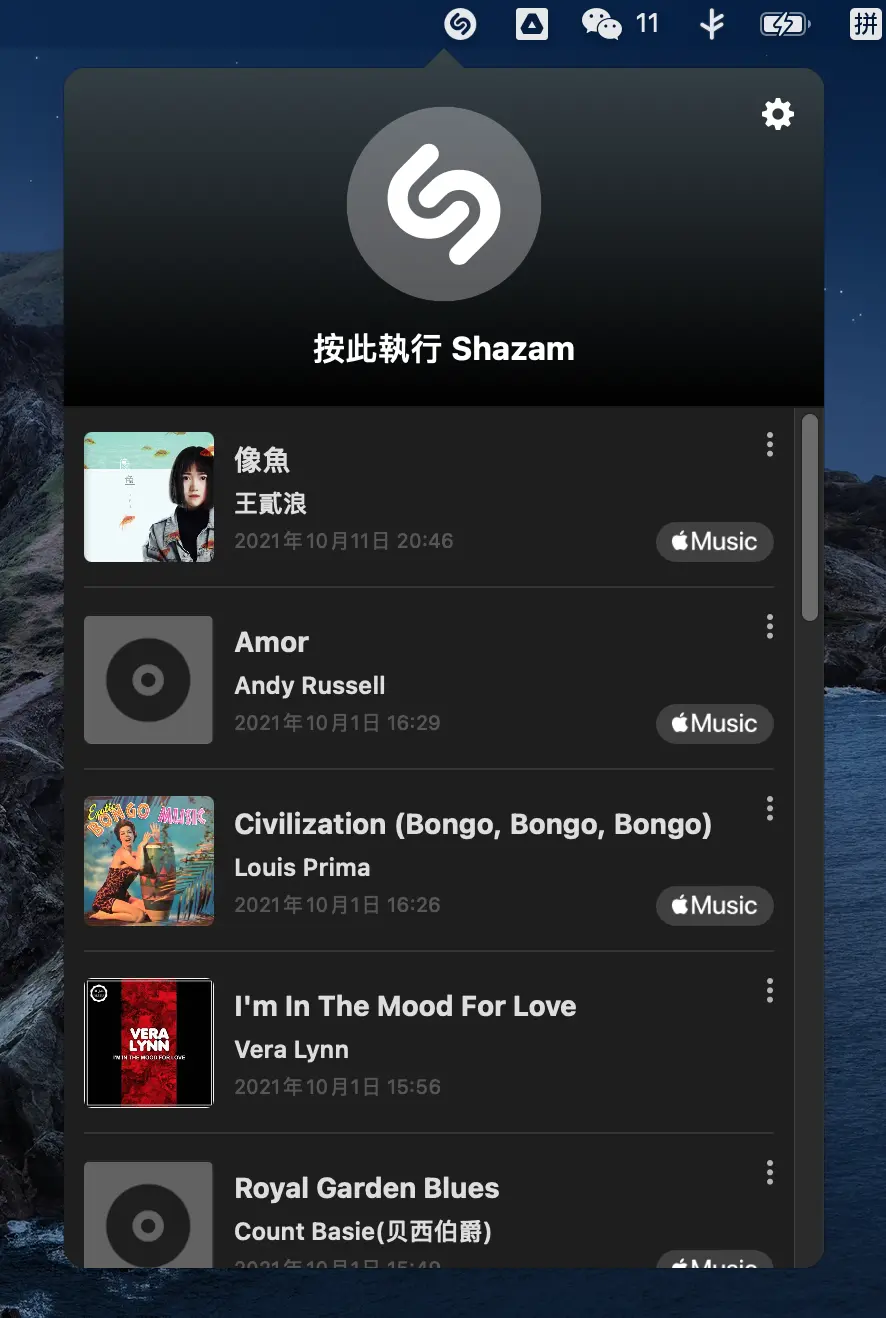 苹果旗下「听歌识曲」是我接触所有同类中最好的,看电影时可以挂在后台,可以通过 App Store 下载。