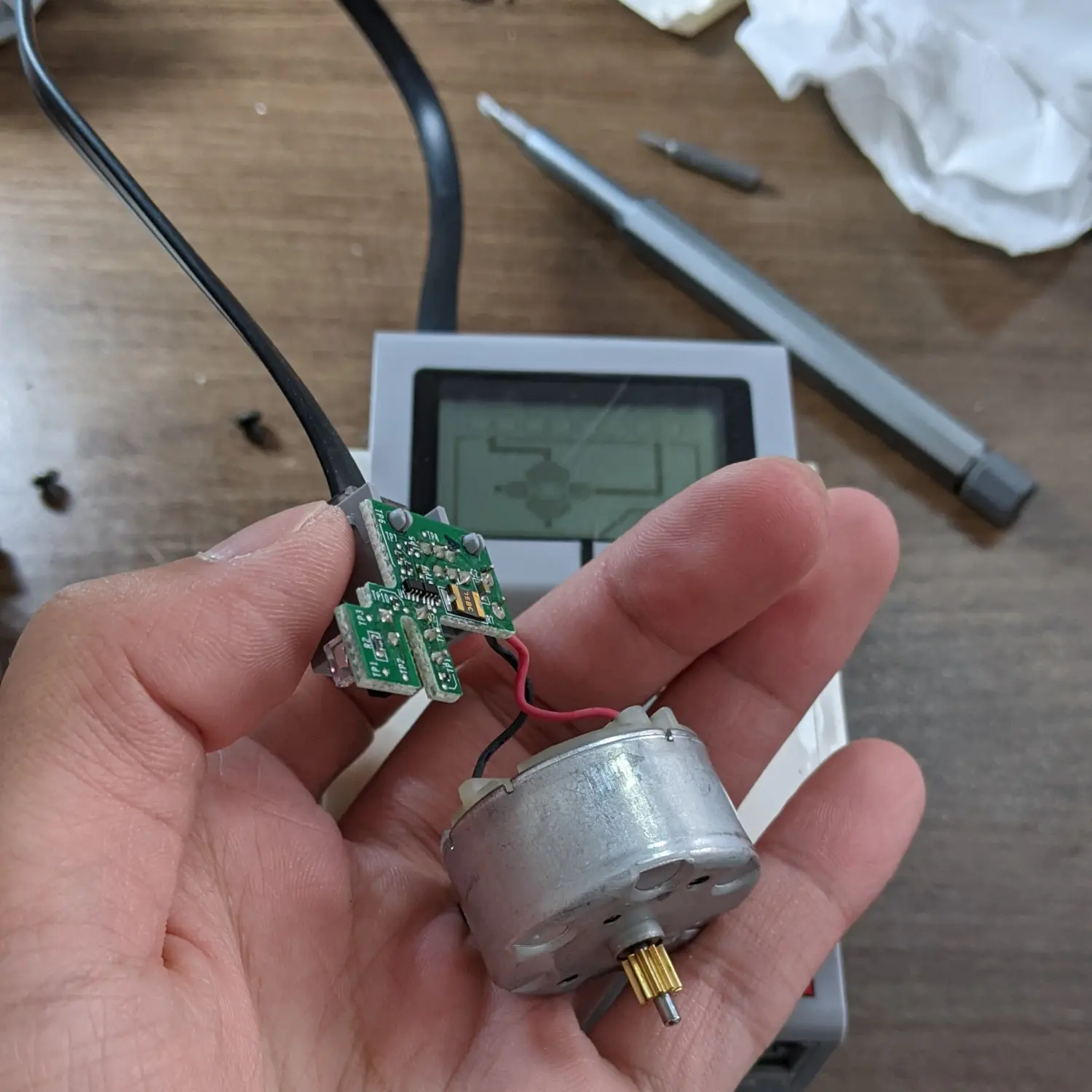 我手上的大型电机坏的并不彻底,电机阻塞,只能朝一个方向转,就像棘轮机构一样 Uh-Huh?