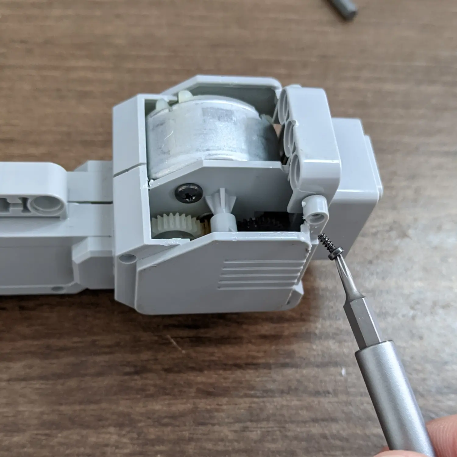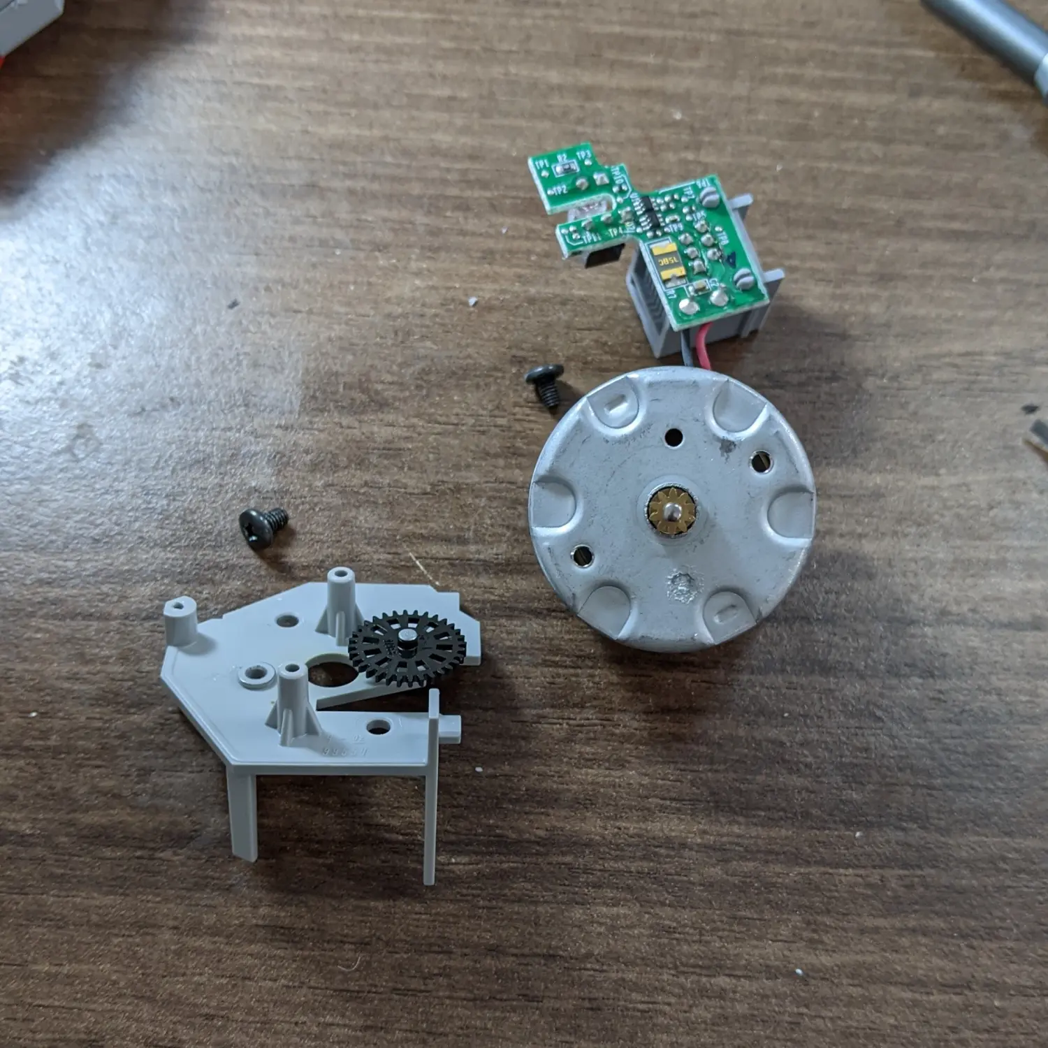 这里我并没有把大型电机前面那些齿轮全拿掉,证实了马达阻塞就归回原位了。
