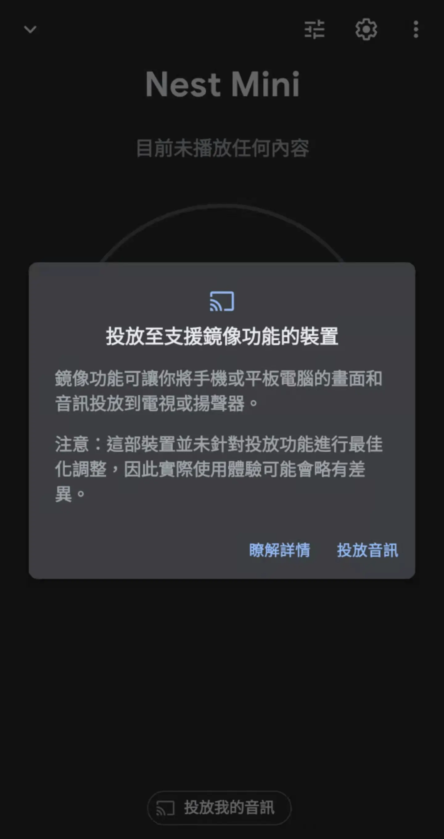但是设置成所在住家又不支持声控播放 YouTube Music,会提示「如果要播放 YouTube 上的音乐,您需要将支持 Cast 的设备连接网络……」因为服务不支持大陆地区(台湾可以、香港忘了),我买的 YouTube Premium 不就白费了?
